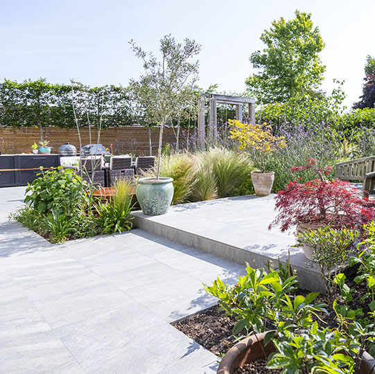 Garden Design Essex Testimonial from Sandra in Chelmsford, ‘We are really pleased with the garden the transformation is amazing just looking forward to enjoying it now!! Hopefully using the sun loungers and table this weekend for a BBQ!!’
